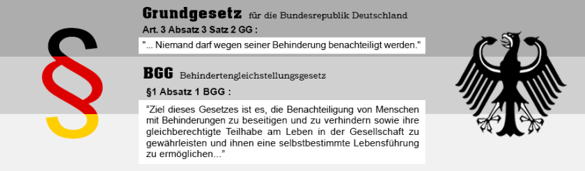Rechte für Behinderte sind sowohl im Grundgesetz als auch konkret im Behindertengleichstellungsgesetz fest verankert.